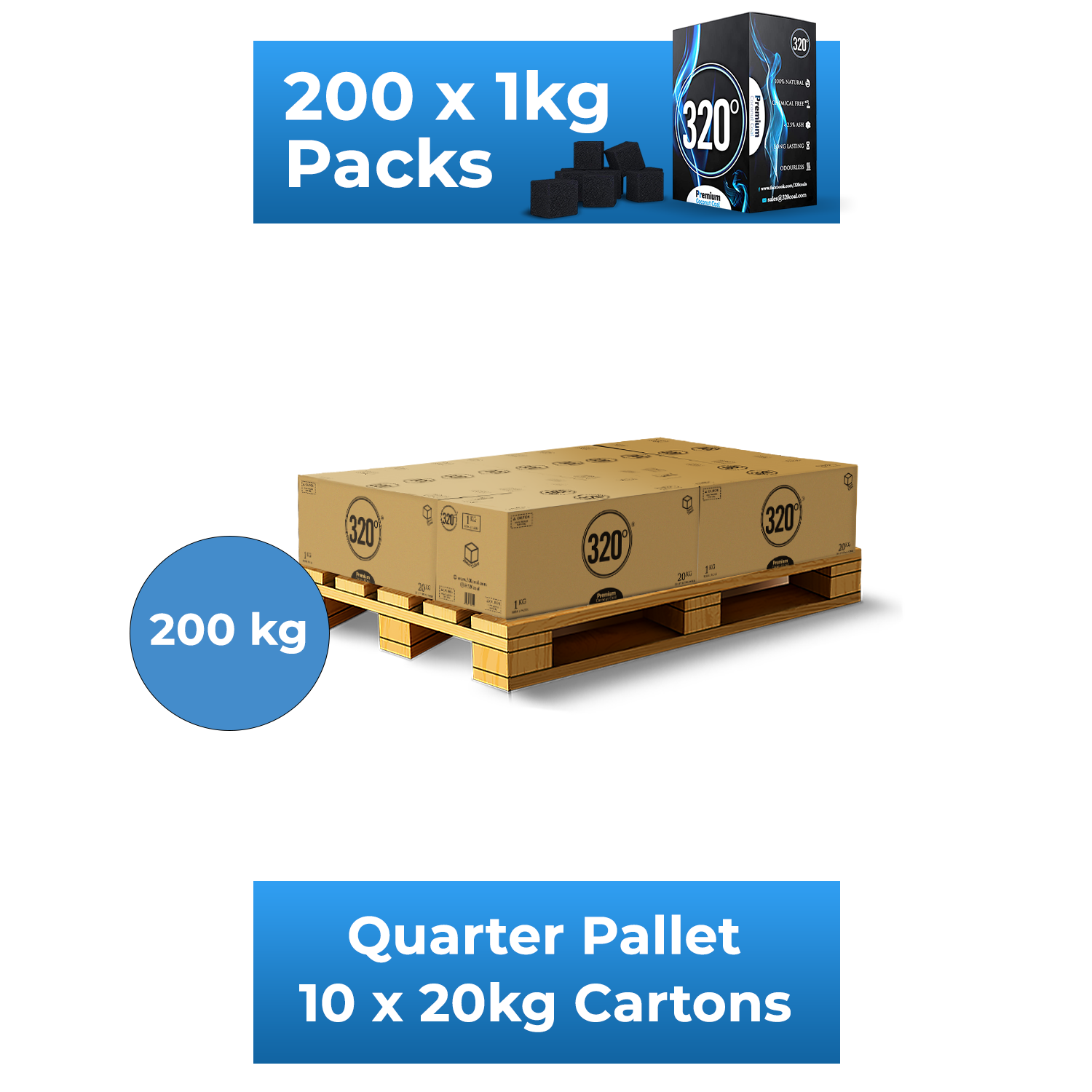 320° 200 KG Shisha Hookah Charcoal (25mm Cubes) – Quarter Pallet – 10 x 20kg Cartons