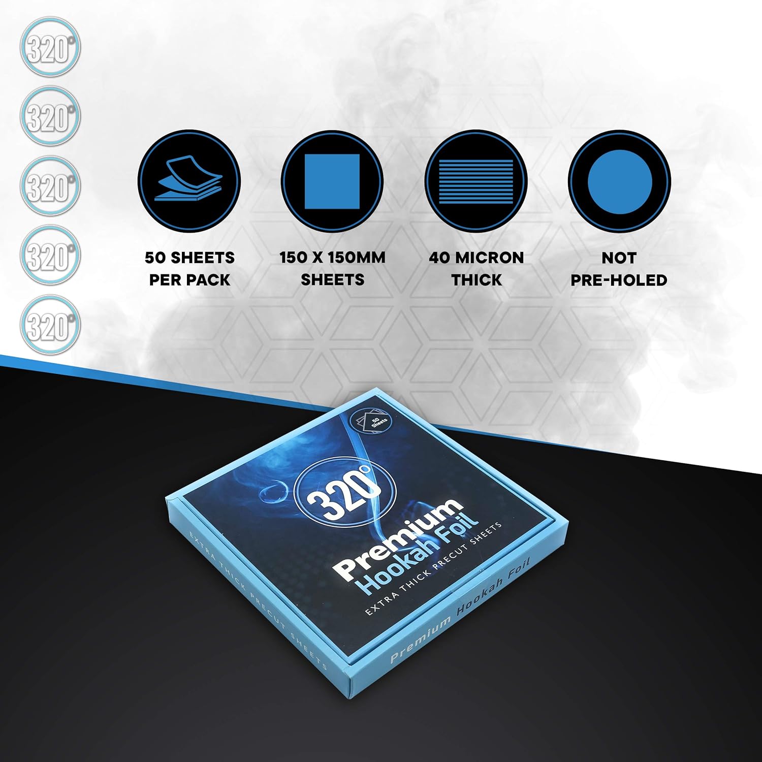 • Extra thick precut hookah foil sheets, 40-micron thickness, provide durability and reliable performance. Perfect for securing hookah coal and ensuring even heat distribution for an improved session.